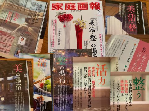 「家庭画報2月号」ウェルネス温泉新時代「美・活・整の湯宿へ」の特集全体に関わらせていただき、どんな切り口で温泉ウェルネスを語ろうかと、編集部のみなさんと膝詰めで会議、議論を重ねました。こだわったのは、これからの温泉ウェルネス。長年考えてきた美にいいことは健康によい、健康によいことは美にもよい。の観点をどんな言葉でどのようなテーマで伝えようかということ。今回初めて、3つの美と健康の柱「美肌・活力・整う」を立てて、新時代の温泉ウェルネスを考えてみました。これを機会にこれからも新しい温泉ウェルネスの柱を探究して深めてみたいと思っています。
