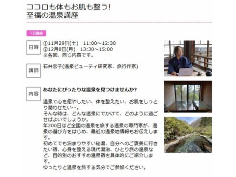 毎日文化センター「ココロも体もお肌も整う!至福の温泉講座」を今年も開催します。