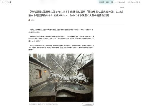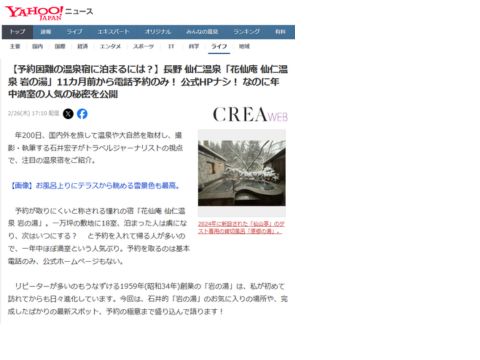 「CREA Web・石井宏子の温泉連載」がYahooニュースにも掲載されました