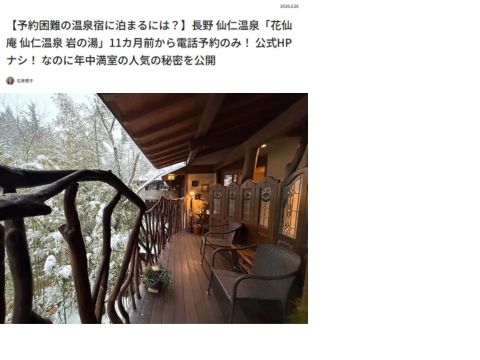 年200日、国内外を旅して温泉や大自然を取材し、撮影・執筆する石井宏子がトラベルジャーナリストの視点で、注目の温泉宿をご紹介します。